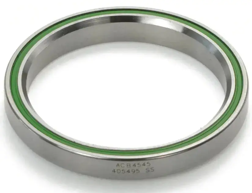 Angular-contact headset bearing featuring 440C stainless steel balls and races for superior corrosion protection.
