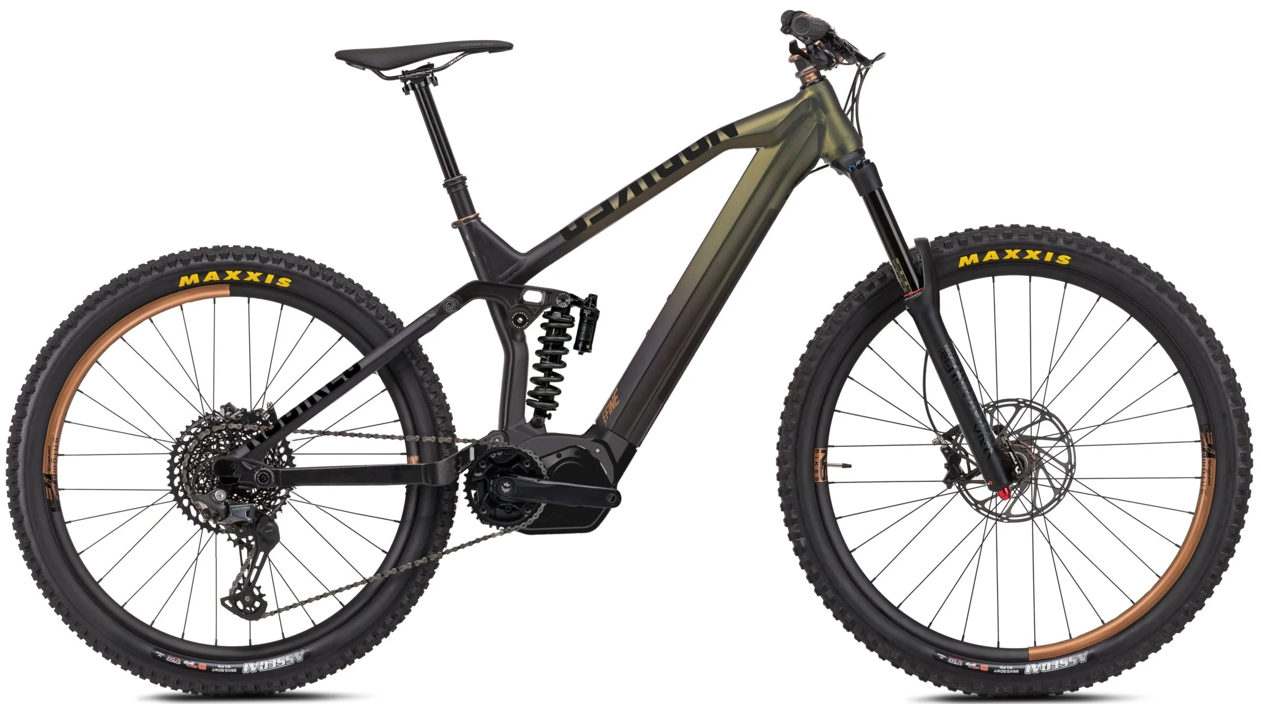 | Frame | NS Bikes E-fine AL w/ 160mm travel, AL6061-T6 + AL6066-T6, custom hydroformed tubes, Shimano ep8 drive unit, integrated Shimano battery hight-capacity |