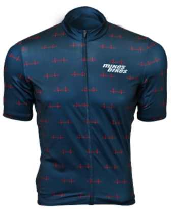 All new for 2022, the styling Mikes Bikes bridges jersey is speckled with miniature renditions of the Golden Gate.