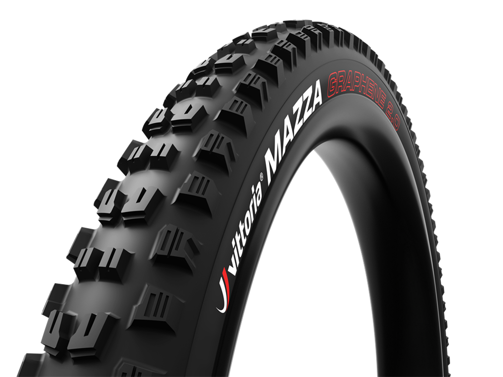 The Vittoria Mazza combines years of athlete input with cutting edge tread technology, raising the bar on the mixed terrain Enduro tire category. Starting with a defined center tread, the Mazza uses deep siping in the direction of rotation, allowing the tire to roll fast while still opposing drift, especially in off-camber terrain. The stepped leading edge rolls like a ramp, but digs in on climbs, making Mazza a top choice for both front and rear use.